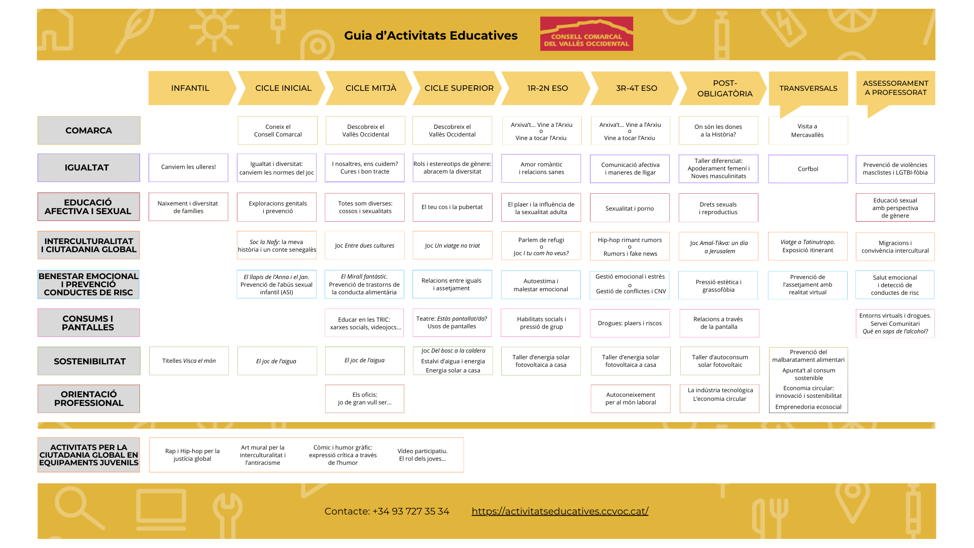 Per aquest motiu, s’ofereixen activitats en diferents àmbits, organitzades en itineraris que travessen totes les etapes formatives: